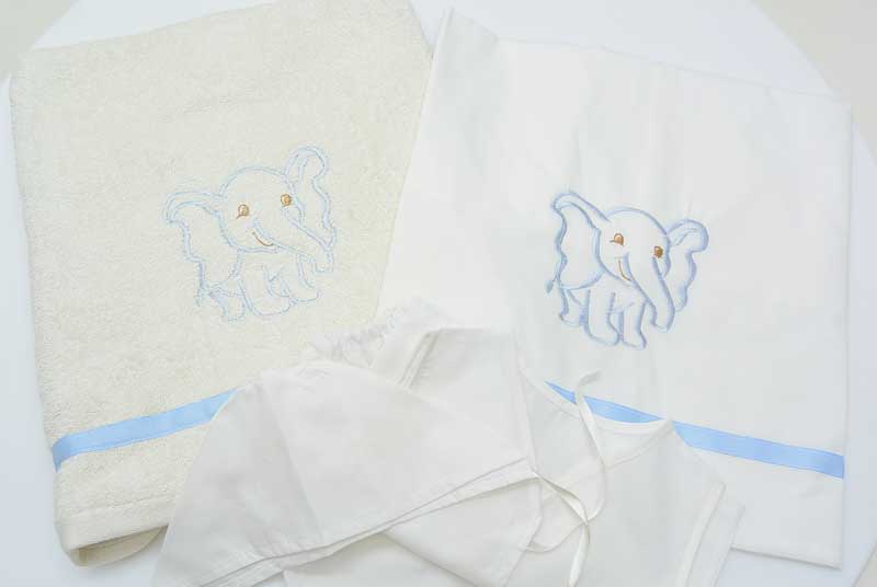 Λαδόπανα Βάπτισης με σχέδιο ελεφαντάκι ελληνικής κατασκευής άριστης ποιότητας βαμβακερά. Το σετ περιλαμβάνει πετσέτα μικρή και μεγάλη, σεντονάκι και σετ εσώρουχα.