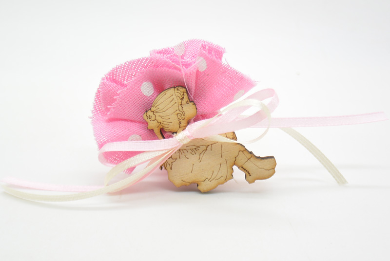 Κέρασμα Γέννας με διακοσμητικό ξύλινο Sarah kay. Μπορεί να γίνει σε διάφορες αποχρώσεις. Η τιμή αφορά δεμένο με 2 κουφέτα αμυγδάλου.