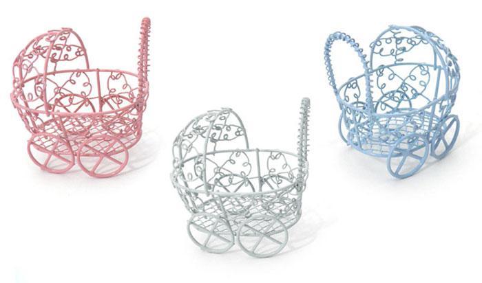 Κέρασμα Γέννας καροτσάκι σε 2 αποχρώσεις με διαστάσεις 7 x 5 x 2.5 cm. Το καλαθάκι δίδεται στολισμένο με αποχρώσεις της επιλογής σας και περιλαμβάνει 2 κουφέτα