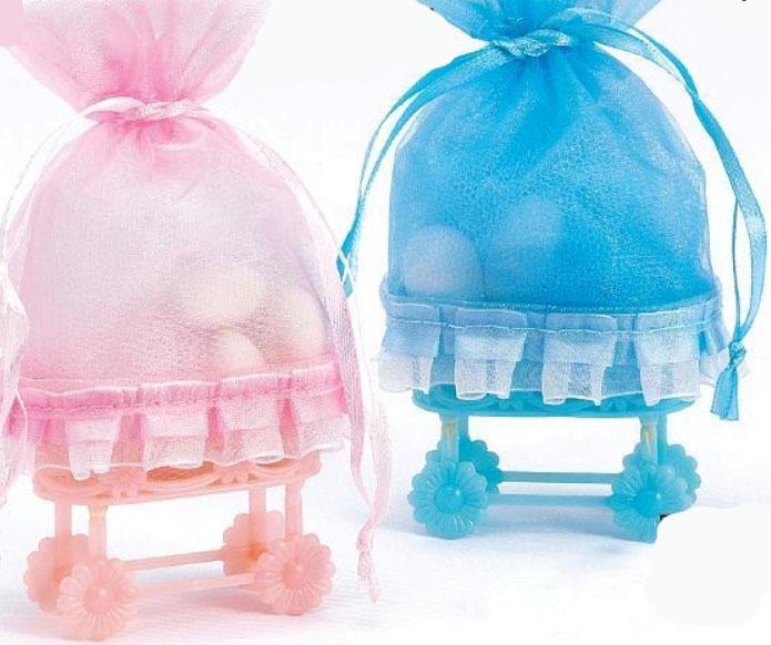 Κέρασμα γέννας πουγκί καροτσάκι σε δυο αποχρώσεις. Η τιμή περιλαμβάνει εσωτερικά 2 κουφέτα. Διαστάσεις 12 cm.
