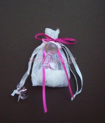 Κέρασμα γέννας με πουγκί οργάντζα με διαστάσεις 5 x 7.5 cm και κλειδί mickey.