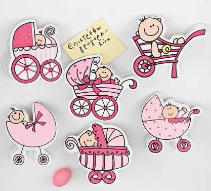 Κέρασμα Γέννας μανταλάκι σε διάφορες παραστάσεις σε ροζ απόχρωση.  Η τιμή περιλαμβάνει 2 κουφέτα. Διαστάσεις 7 εκ.