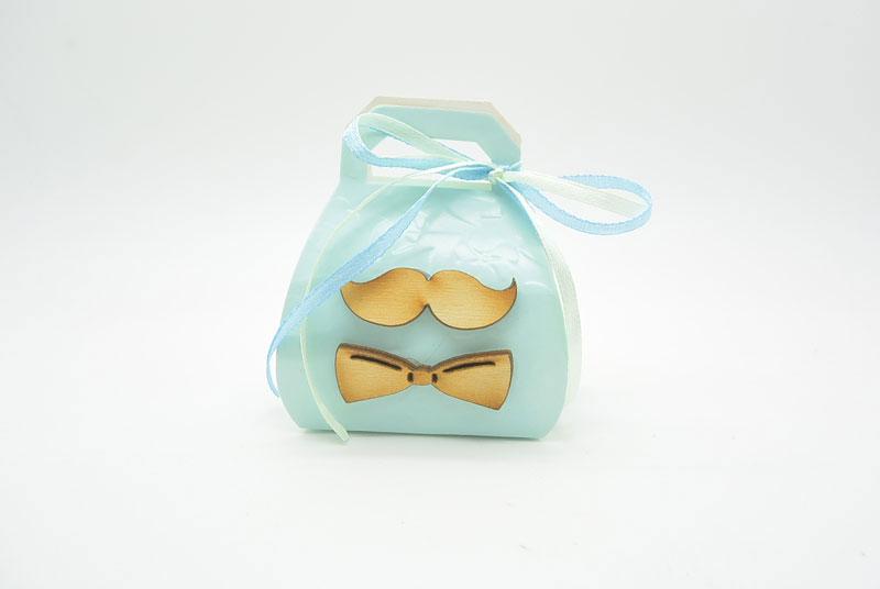 Κέρασμα Γέννας μουστάκι παπιγιόν σε χάρτινο κουτάκι. Το κουτάκι έχει διάσταση 5,3cm x 3,7cm 7,5cm. Η τιμή περιλαμβάνει το κέρασμα με 2 κουφέτα αμυγδάλου.