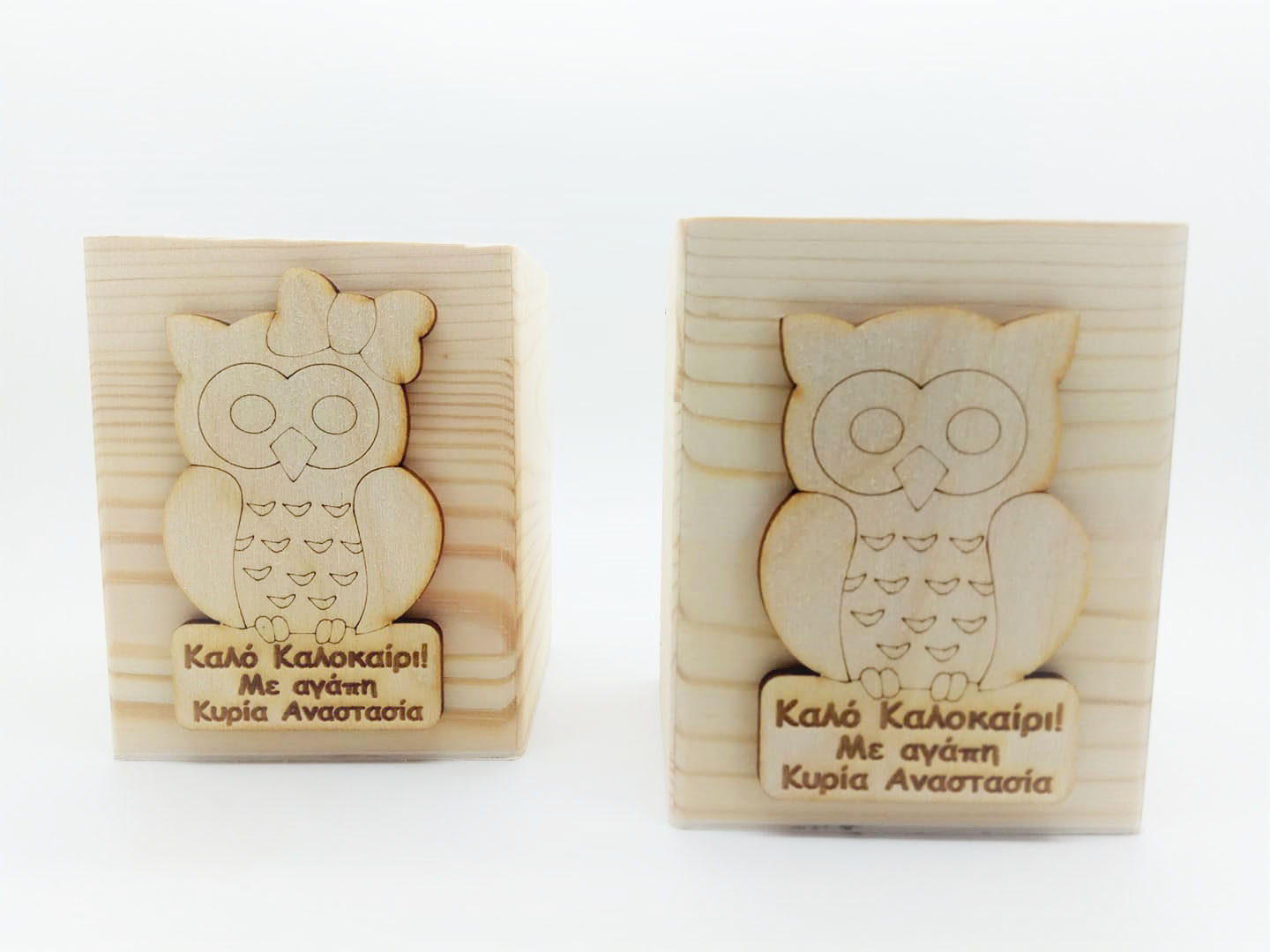 Αναμνηστικά Διακοσμητικά για σχολεία | Δωράκι απο την δασκάλα μολυβοθήκη ξύλινη κουκουβάγια (5123903)