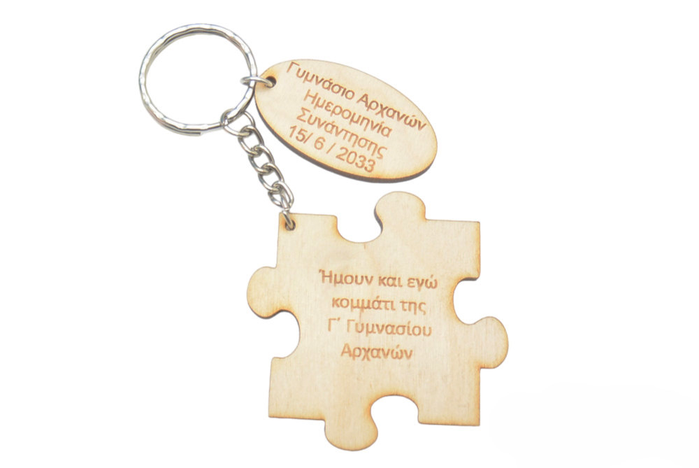 Αναμνηστικά Διακοσμητικά για σχολεία | Ξύλινο Αναμνηστικό Μπρελόκ πάζλ με αφιέρωση και ημερομηνία συνάντησης (195692)