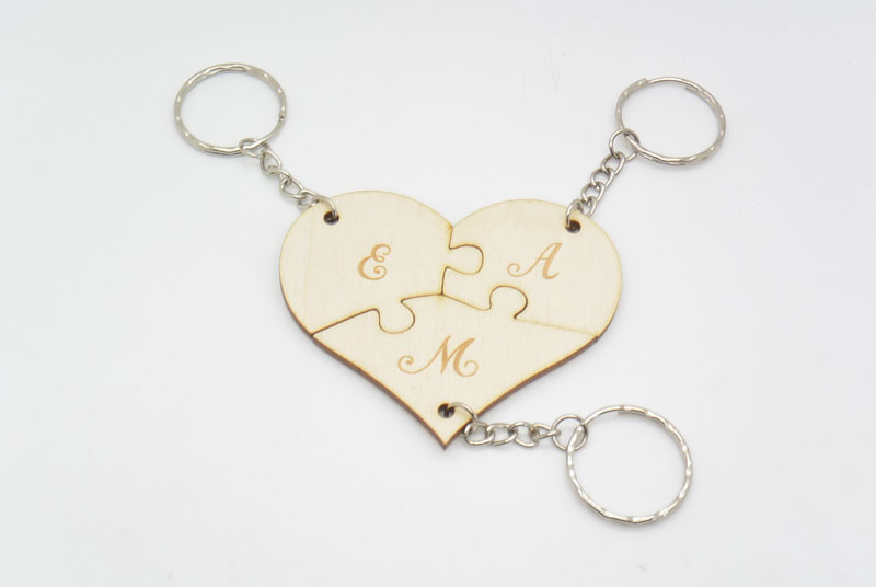 Ξύλινα Μπρελόκ παζλ σετ 3 τεμάχια με μονογράμματα. Η τιμή αφορά τα τρία μπρελόκ. Διάσταση Ξύλινης καρδιάς 8 εκ.