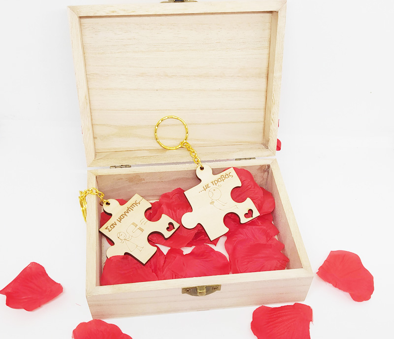 Ξύλινα Διακοσμητικά αναμνηστικά | Ξύλινο κουτί με ροδοπέταλα και μπρελόκ για δωράκι του Αγίου Βαλεντίνου (5123813)