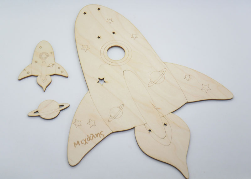 Ξύλινα Διακοσμητικά για λαμπάδες πασχαλινές | Ξύλινο Διακοσμητικό για λαμπάδα με χαραγμένο πύραυλο με αστεράκια (15501167)