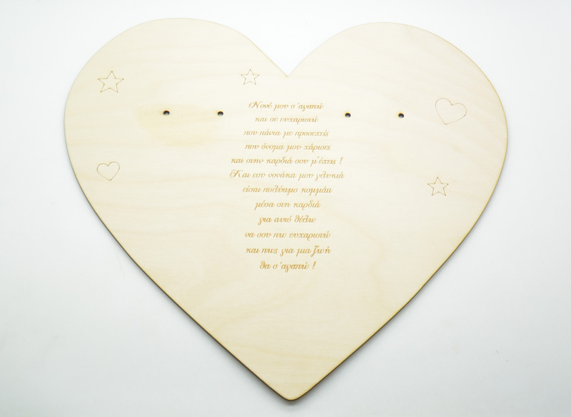 Ξύλινη Πλάτη λαμπάδας μεγάλη καρδιά διπλή με αφιέρωση με διαστάσεις 32 x 30 εκ.