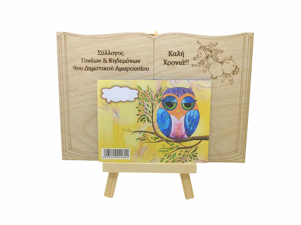 Ξύλινο Ημερολόγιο κάδρο βιβλίο με καβαλέτο και σχέδιο ρόδι για συλλόγους και σχολεία (195760)