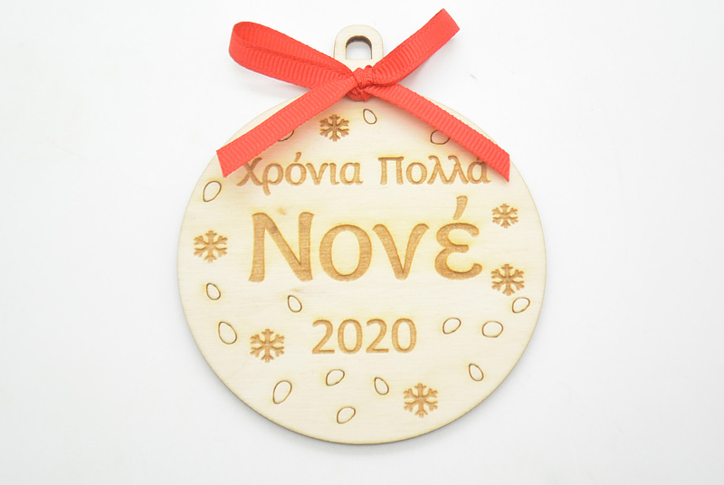 Ξύλινη Χριστουγεννιάτικη μπάλα χρόνια πολλά νονέ (60074-2)