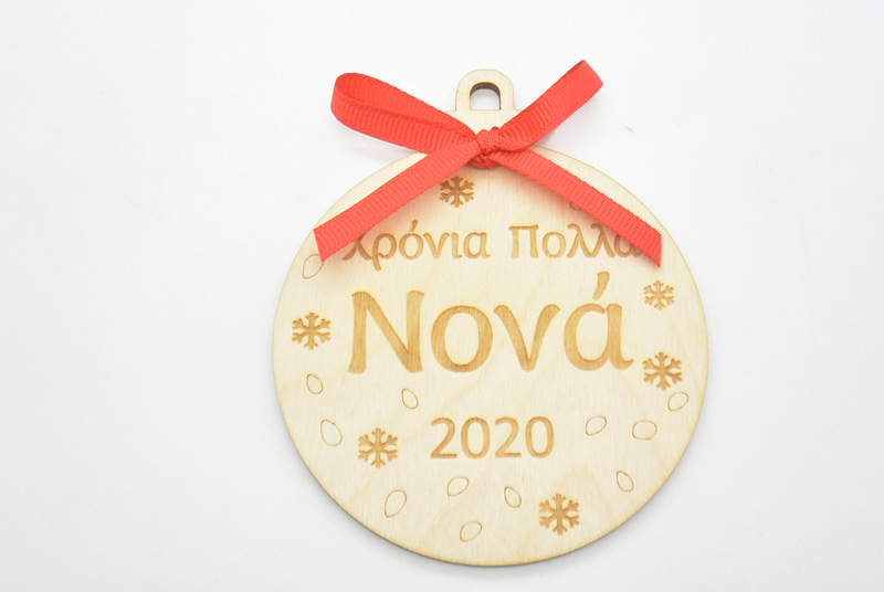Χριστουγεννιάτικα Αναμνηστικά δωράκια | Ξύλινη Χριστουγεννιάτικη μπάλα χρόνια πολλά νονά (60074-1)