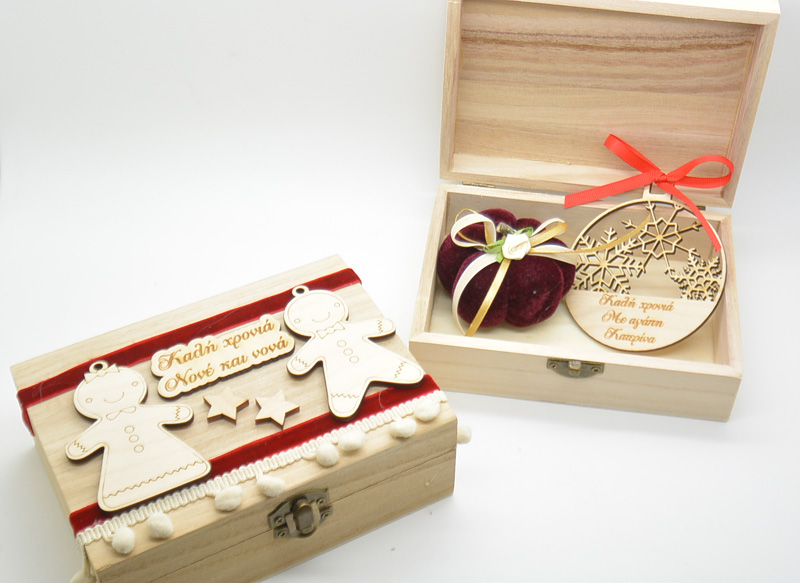 Εποχιακά Ξύλινα Διακοσμητικά | Χριστουγεννιάτικο Δωράκι σε κουτί για την νονά και τον νονό (5160017)