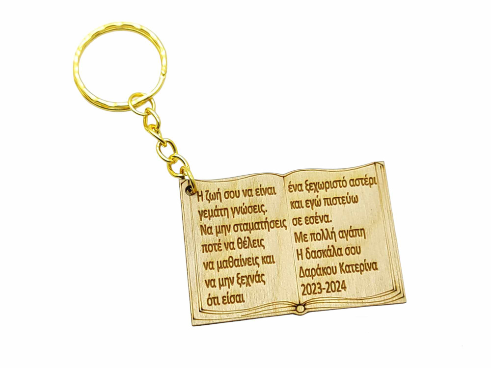 Ξύλινo Αναμνηστικό μπρελόκ βιβλίο δώρο από την δασκάλα (5123248)
