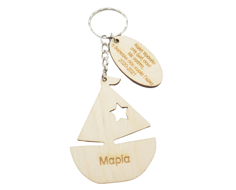 Εποχιακά Ξύλινα Διακοσμητικά | Αναμνηστικό Μπρελόκ καράβι με το όνομα του παιδιού δώρο από την δασκάλα (5123251)