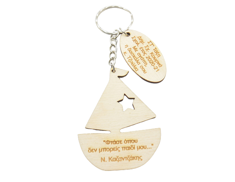 Εποχιακά Ξύλινα Διακοσμητικά | Αναμνηστικό Μπρελόκ καράβι με αφιέρωση δώρο από την δασκάλα (5123252)