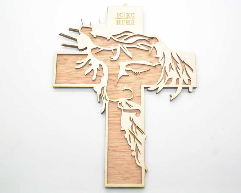 Εποχιακά Ξύλινα Διακοσμητικά | Σταυρός Ξύλινος κρεμαστός μεγάλος με χαραγμένο τον Ιησού (5123278)