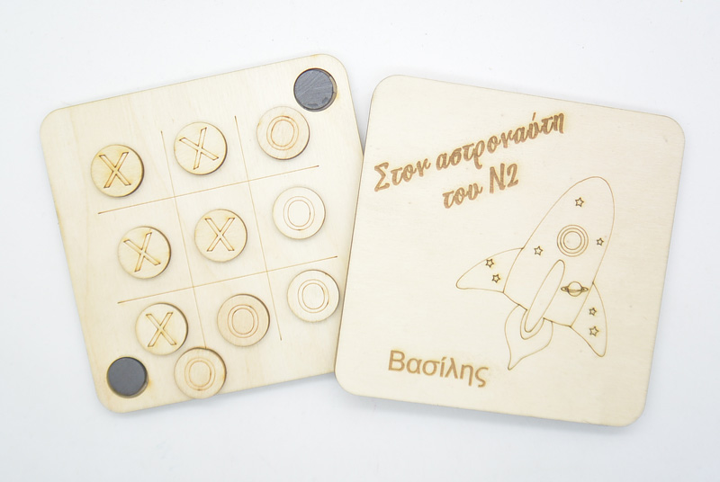 Ξύλινη Τρίλιζα με το όνομα του κάθε παιδιού, μαγνητικό κουτί. Διάσταση 12 x 12 cm. Μπορεί να χαρακτεί όποιο θέμα θέλετε.