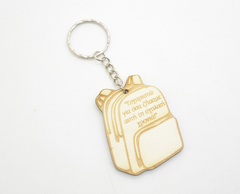 Ξύλινο Μπρελόκ σχολική τσάντα με αφιέρωση (5123829)