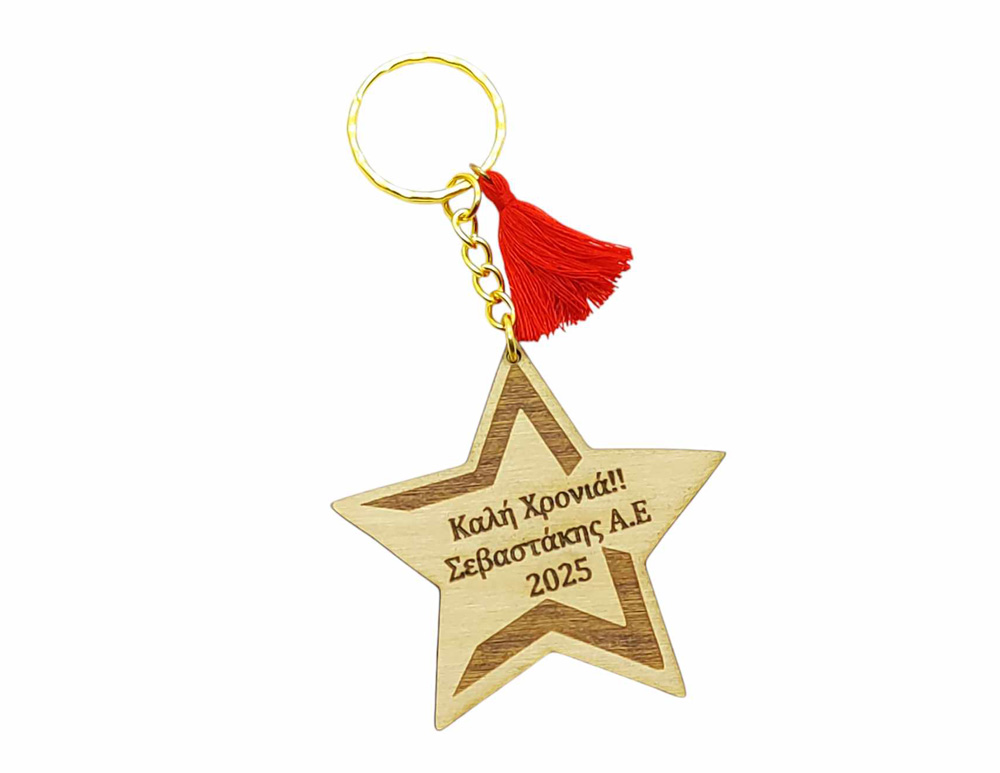 Εταιρικό Γούρι Ξύλινο μπρελόκ αστέρι με φούντα (195755)