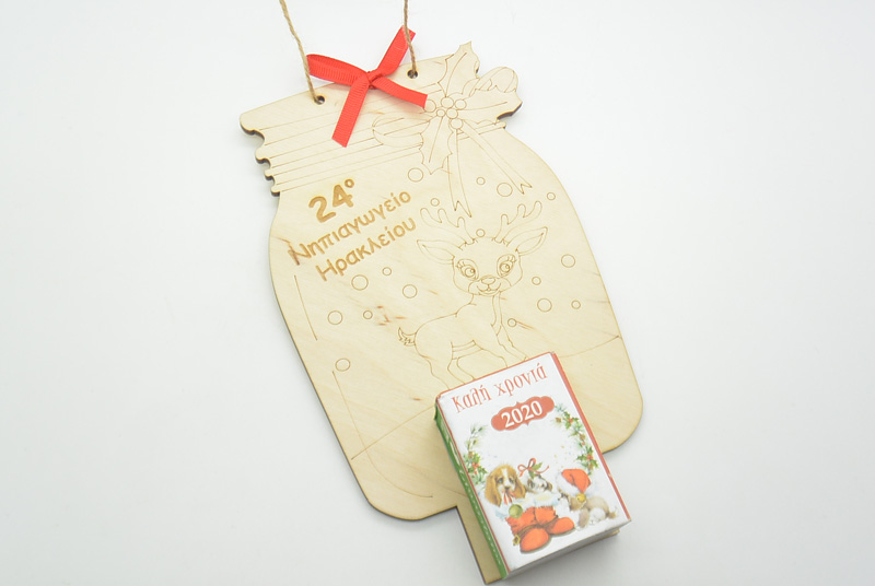 Ξύλινο Ημερολόγιο μεγάλο τοίχου τάρανδος με σχέδιο βάζο ιδανικό για νηπιαγωγεία ή σχολεία με διάσταση ξύλου 20.5 x 12.1 cm. Μπορούν να χαρακτούν τα στοιχεία του εκάστοτε σχολείου. Η τιμή αφορά ποσότητες απο 50 εώς 200 τεμάχια. Ειδικές τιμές σε μεγαλύτερες ποσότητες και στην περίπτωση που θέλετε μόνο τα υλικά.