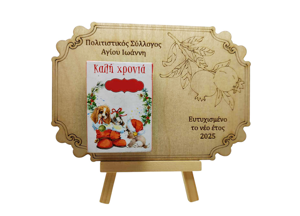 Ημερολόγια Συλλόγων και σχολείων | Ξύλινο Ημερολόγιο κάδρο με καβαλέτο και σχέδιο ρόδι για συλλόγους και σχολεία (195756)