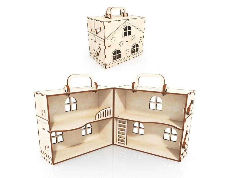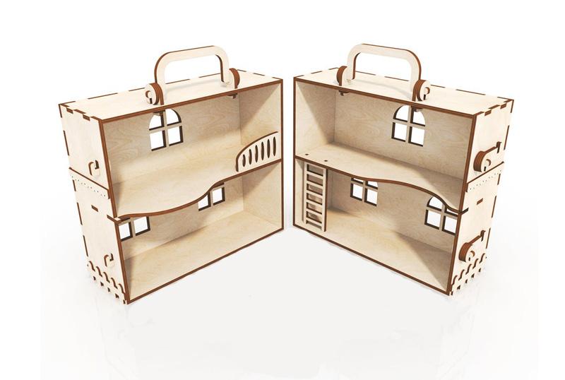 Κατασκευές 3d | Ξύλινο Κουκλόσπιτο βαλίτσα (101128)