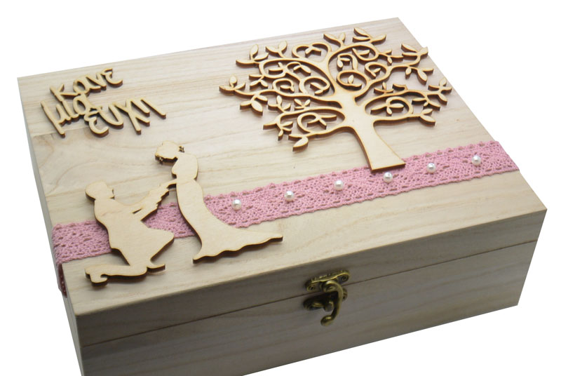Ξύλινο Κουτί ευχών για γάμο με σχέδιο γαμπρός νύφη και δέντρο της ζωής. Διαστάσεις κουτιού 32 x 25 x 11 εκ. Μπορεί να συνδιαστεί με ξύλινες καρδιές με επιπλέον χρέωση.