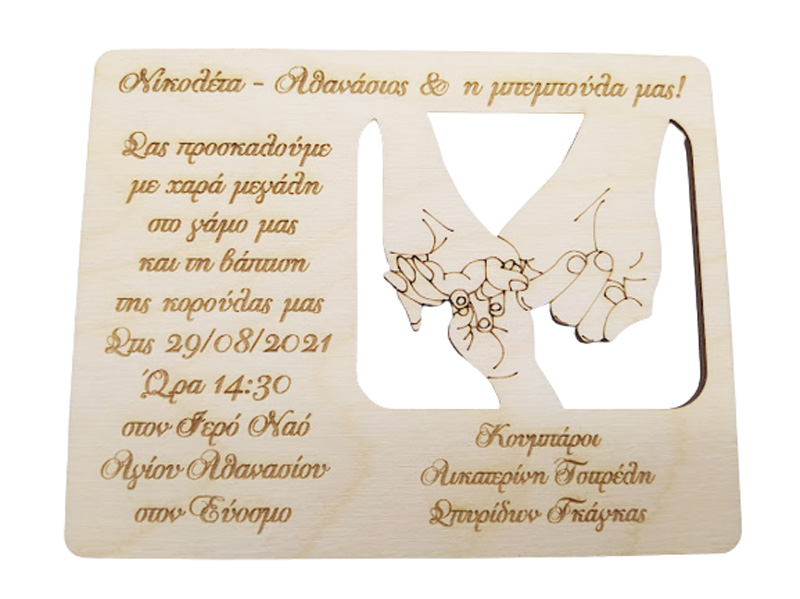 Ξύλινα Προσκλητήρια για βάπτιση | Ξύλινο Προσκλητήριο γάμου βάπτισης με θέμα δεσμοί οικογένειας (5123299)