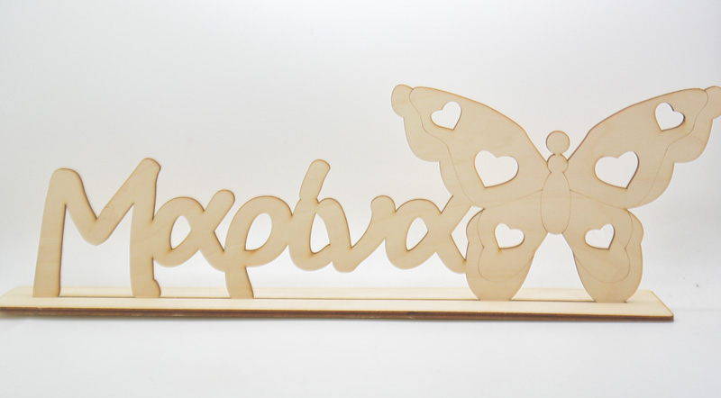Ξύλινα Σταντ βάπτισης και γάμου | Ξύλινο Διακοσμητικό όνομα σταντ με πεταλούδα (5123186)