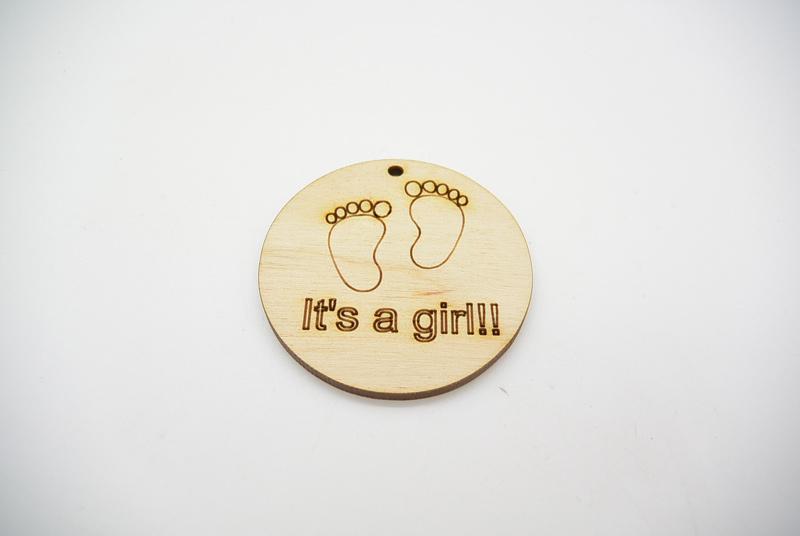 Ξύλινο Διακοσμητικό it's a girl σε φυσικό άβαφο με διάσταση 5 x 5 εκ. Συσκευασία 50 τεμαχίων. Η τιμή αφορά το τεμάχιο.