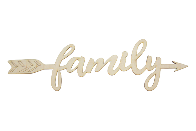 Ξύλινα στοιχεία διακοσμητικά | Ξύλινο Διακοσμητικό βέλος μεγάλο με τη φράση family (5123308)