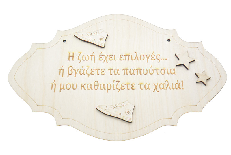 Ξύλινη Ταμπέλα εξώπορτας με μήνυμα για να αφήνουν οι καλεσμένη σας έξω τα παπούτσια τους. Διαστάσεις 30 x 19 εκ. Το μήνυμα της ταμπέλας μπορεί να αλλάξει.