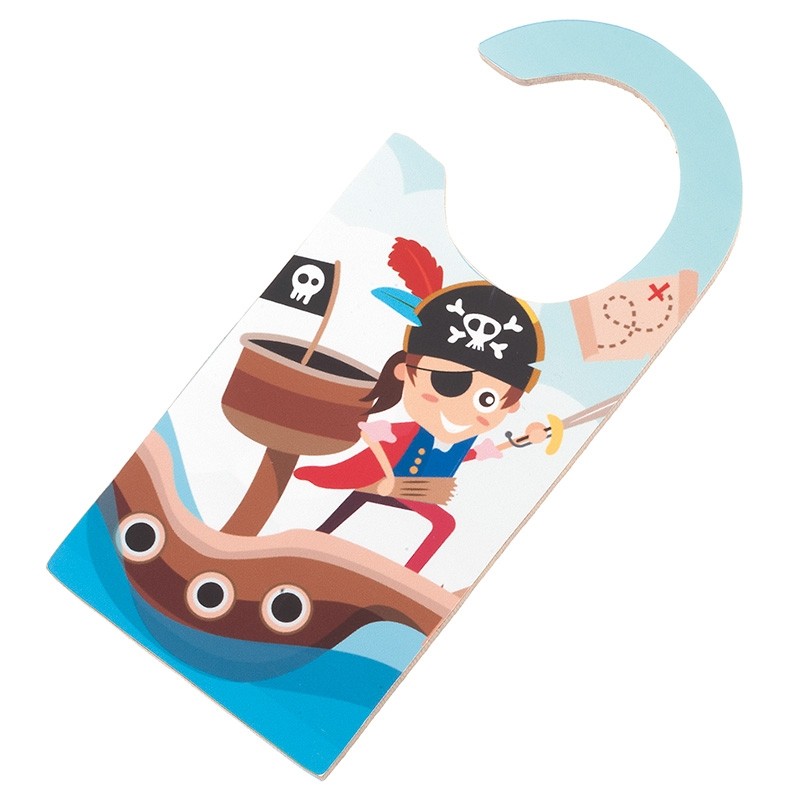 Ξύλινο κρεμαστό διακοσμητικό πόρτας με αυτοκόλλητο πειρατή.