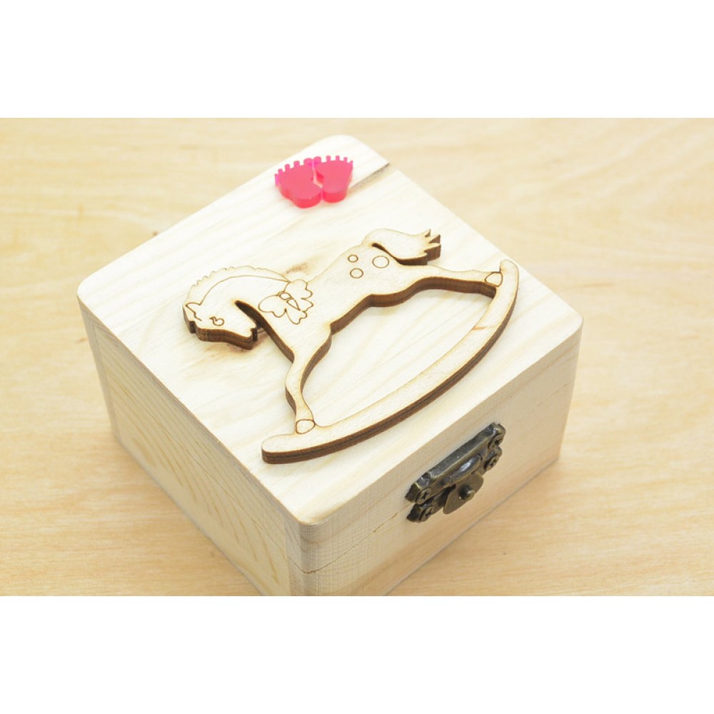 Ξύλινο κουτί αλογάκι με λεπτομέρειες plexiglass μπορείτε να επιλέξετε το χρώμα στις λεπτομέρειες plexiglass. Διάσταση κουτί 8 x 8 x 5  cm.