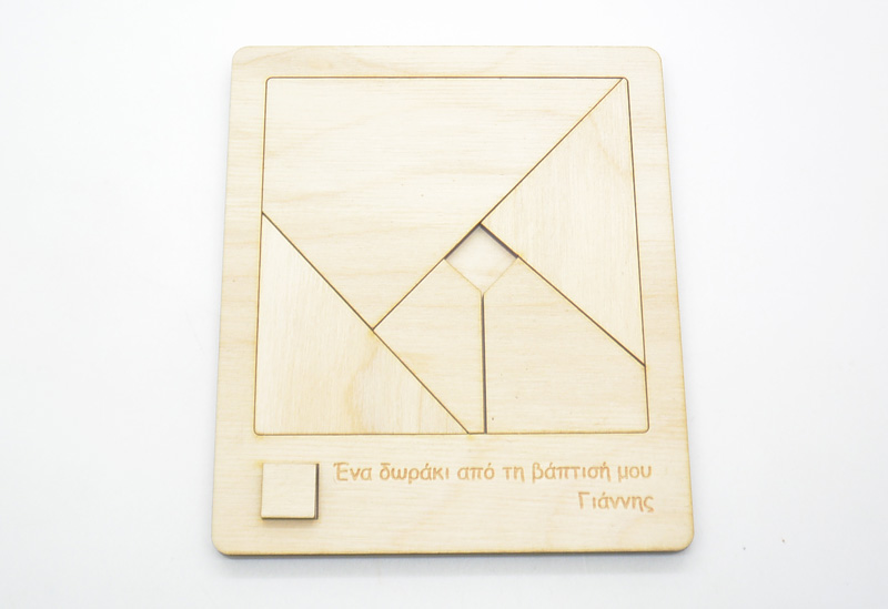Ξύλινες Μπομπονιέρες | Μπομπονιέρα Ξύλινο παζλ Tangram με αφιέρωση και όνομα (5123276)