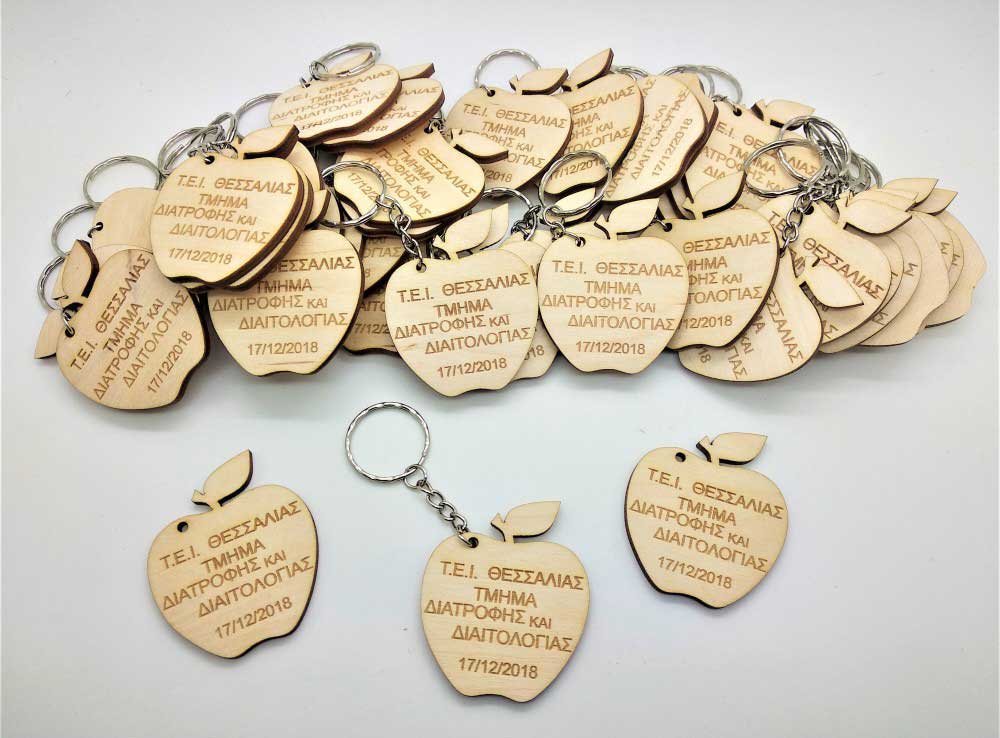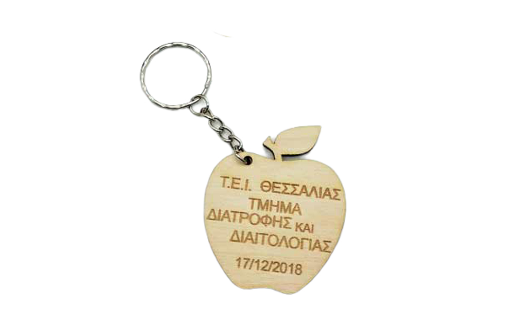 Αναμνηστικό Μπρελόκ ξύλινο ορκωμοσίας διατροφολογίας με σχέδιο μήλο. Διάσταση 12 εκ. Απο το υπομενού μπορείτε να επιλέξετε να γίνει μαγνητάκι αντί για μπρελόκ. Ελάχιστη ποσότητα παραγγελίας 50 τεμάχια.