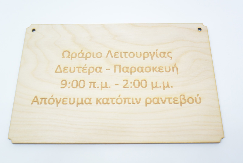 Κοπές με Laser | Ταμπέλα Ξύλινη για ωράριο λειτουργίας (515006501)