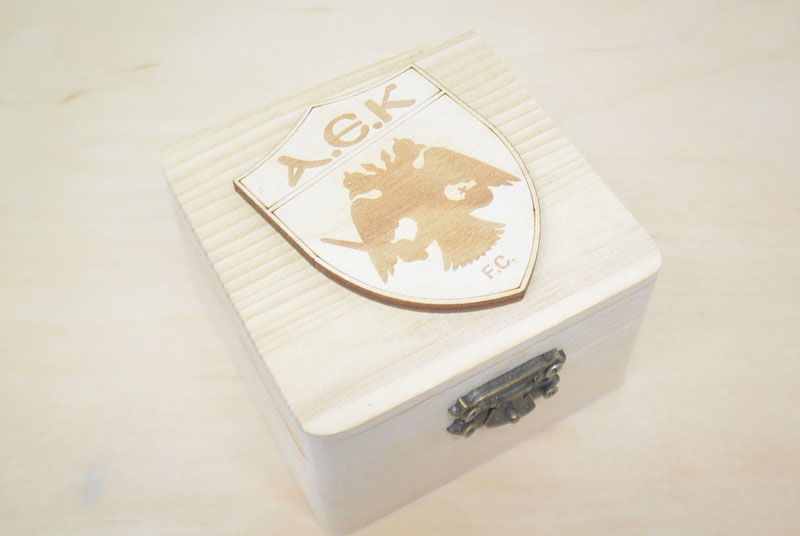 Κοπές με Laser | Ξύλινο κουτί μπομπονιέρα με θέμα Αεκ (152010)