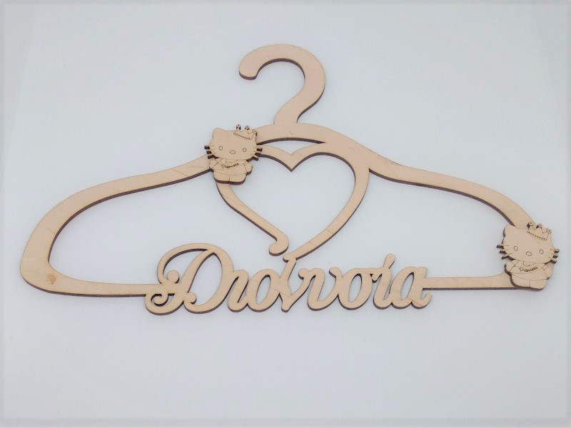 Κοπές με Laser | Ξύλινη Κρεμάστρα με όνομα και θέμα hello kitty (5123766)