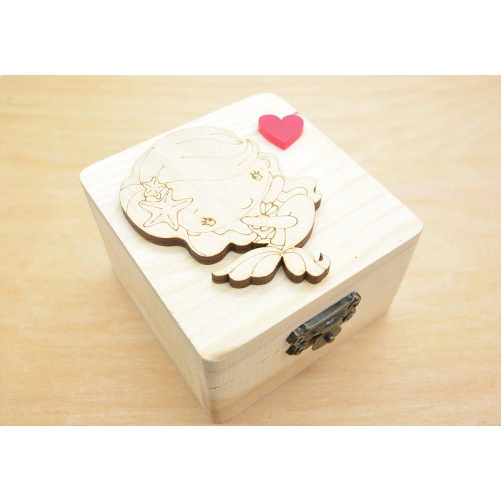 Ξύλινο κουτί γοργόνα με λεπτομέρειες plexiglass. Διάσταση κουτί 8 x 8 x 5  cm.
