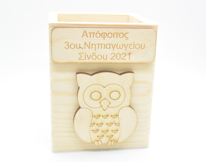 Κοπές με Laser | Αναμνηστική Μολυβοθήκη αποφοίτησης κουκουβάγια με τα στοιχεία του εκάστοτε σχολείου (5123246)