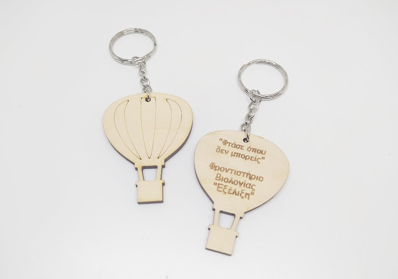 Αναμνηστικό Μπρελόκ αερόστατο με αφιέρωση της επιλογής σας, διπλής όψης. Διαστάσεις 12 εκ με τον κρίκο.