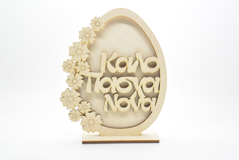 Ξύλινο Διακοσμητικό αυγό καλό Πάσχα νονά με λουλούδια. Διάσταση 15 εκ.