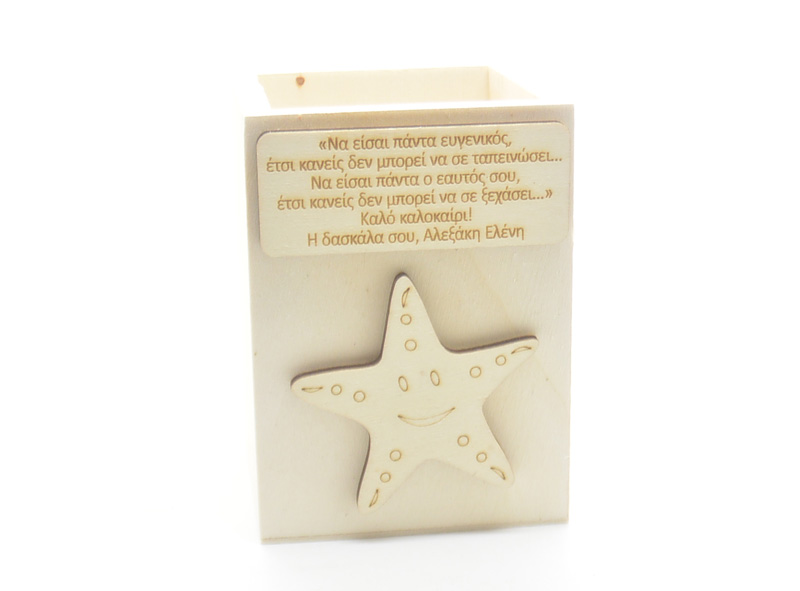 Αναμνηστική Μολυβοθήκη αποφοίτησης αστερίας με αφιέρωση της επιλογής σας. Διάσταση 8 x 8 x 10 εκ