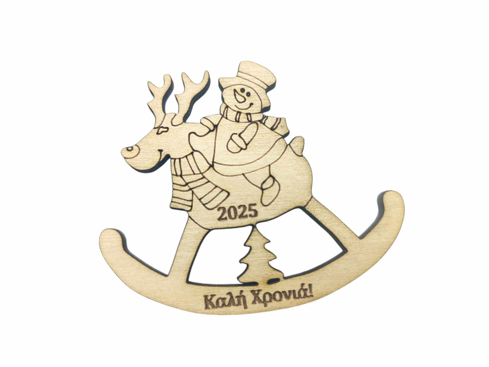 Ξύλινο Διακοσμητικό χιονάνθρωπος με τάρανδο καλή χρονιά με διαστάσεις 7 x 6 εκ.