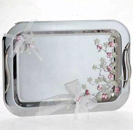 Δίσκος Στολισμένος σε αποχρώσεις λευκό - ροζ για το σετ κουμπάρου ή κέρασμα σε αρραβώνα.