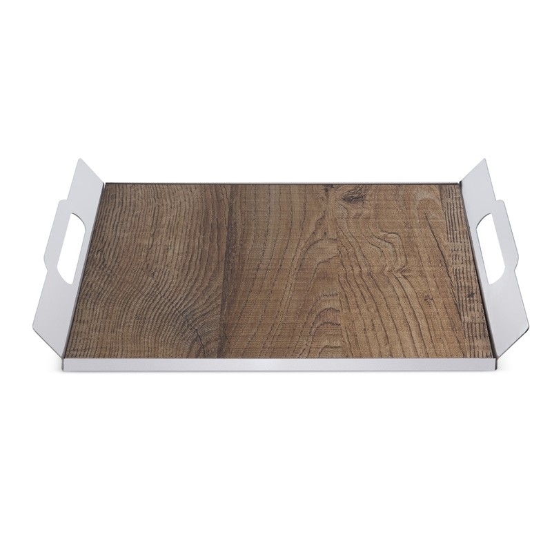 Δίσκος τετράγωνος ανοξείδωτος-inox παραλληλόγραμμος ανοξείδωτος bronze με ξύλινη βάση και χέρια