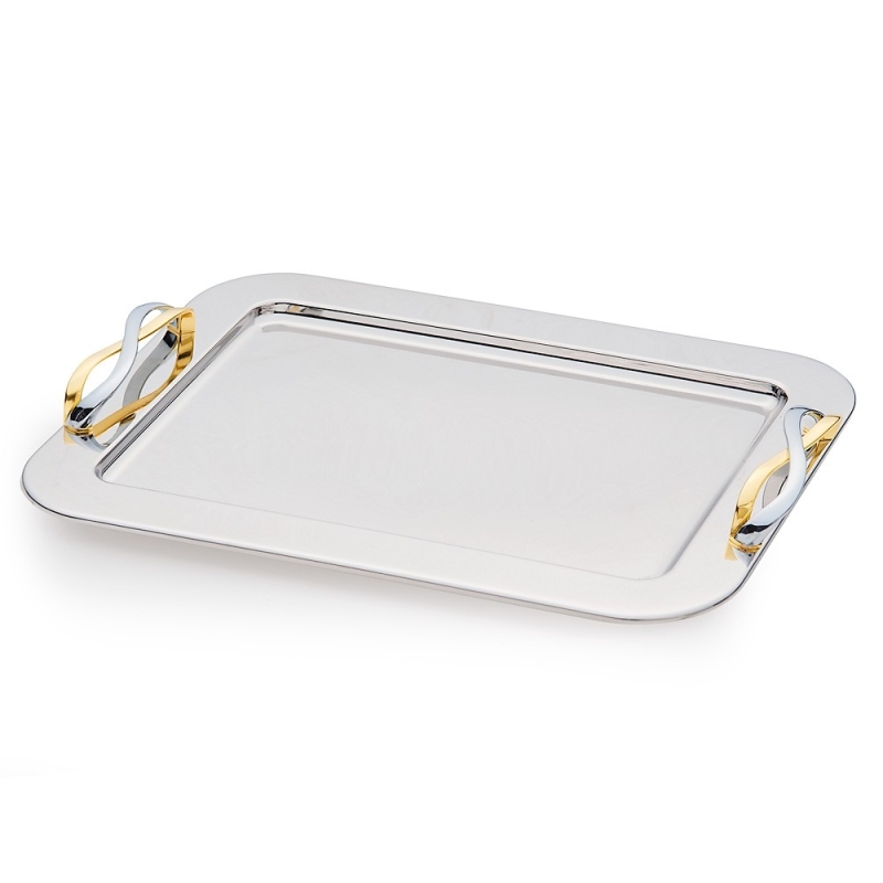 Δίσκος ανοξείδωτος παραλληλόγραμος με χέρια και χρυσές λεπτομέρειες.