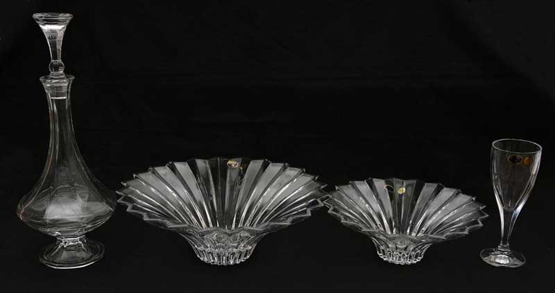 Πλήρες Σετ κουμπάρου κρυστάλλινο το οποίο περιλαμβάνει καράφα, ποτήρι κρασιού, μπωλ μεγάλο για τα κουφέτα, μελιέρα, δίσκο ανοξείδωτο και στέφανα ασημένια με κωδικό 715 σε κουτί πολυτελείας.